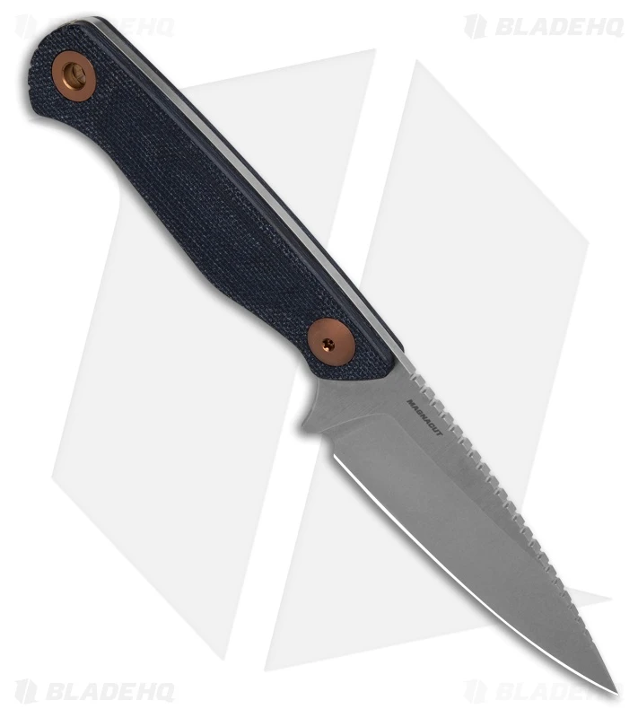 - Handle: Blue denim micarta handle.