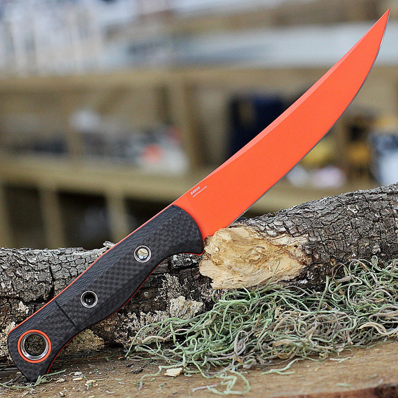 Benchmade Meatcrafter Hunt Series Fixed Blade (15500OR-2) – 6.08″ CPM-S45VN Orange Trailing Point Blade, Carbon Fiber Handle, Orange and Black Sheath
