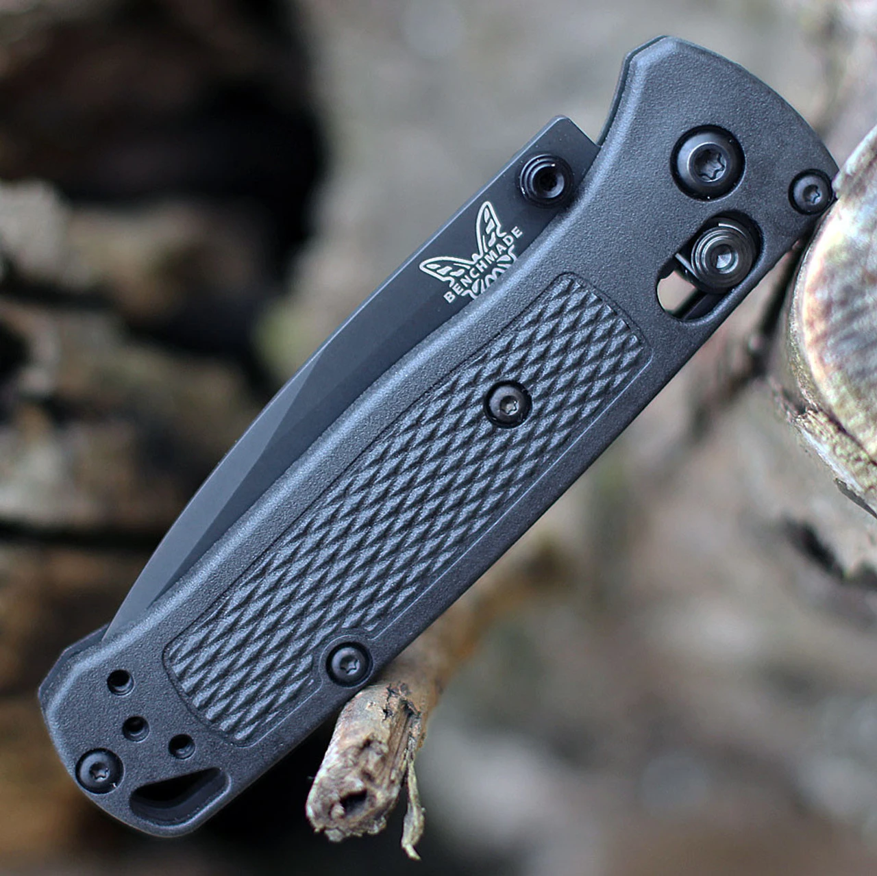 Benchmade MINI Bugout (533BK-2) – 2.82″ CPM-S30V Black Cerakoted Plain Edge Drop Point Blade, Textured Black CF-Elite Handle