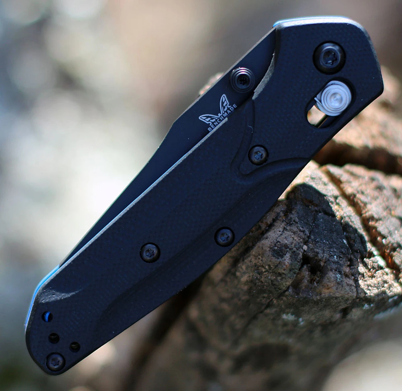 Benchmade Mini Osborne (945BK-1) 2.9 Inch CPM-S30V Reverse Tanto Plain Blade, Black G10 w/ Blue Baselayer Handle