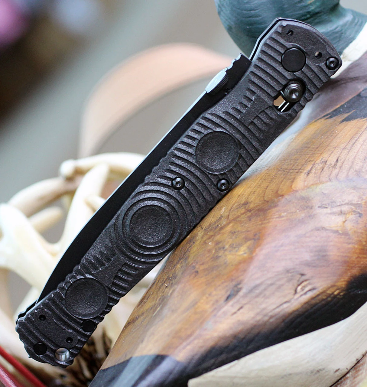 Designed by Greg Thompon as a first-option, battle-blade that incorporates a myriad of functional features, the new 391BK SOCP Folder is ideal for on and off-duty carry. The rapid deployment ring and tip-down carry enhance the speed at which this knife can be deployed from concealment, and the smooth handle dimples allow for confident transition in your hand. Redesigned with Benchmade’s AXIS-lock technology, this knife won’t leave you fumbling for functionality in stressful situations.